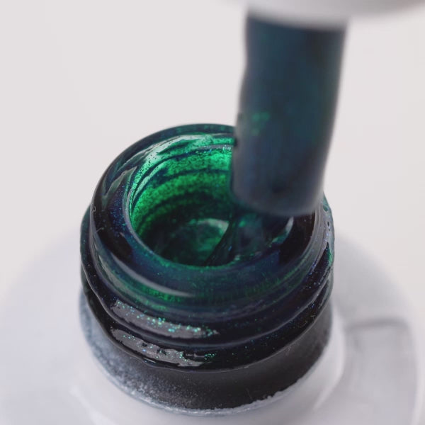 El esmalte semipermanente Cat Eye Velvet Emerald #301 ofrece un acabado verde esmeralda vibrante que cobra vida con su efecto magnético. Sus partículas metálicas permiten crear líneas luminosas y puntos de luz personalizados, logrando un efecto profundo y aterciopelado.